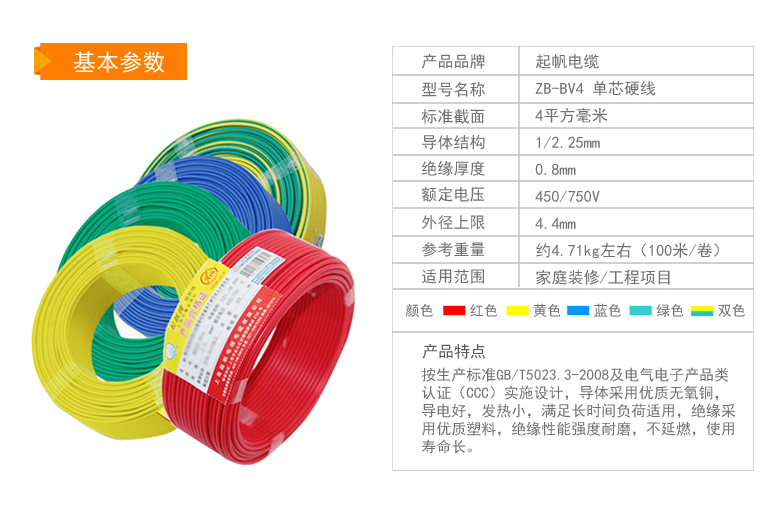 所有電線(xiàn),必須選擇國(guó)標(biāo)線(xiàn),注意廠商,無(wú)論是護(hù)套的,還是穿管散線(xiàn),都要注意品牌。上海起帆電線(xiàn)電纜有限公司自成立以來(lái),始終堅(jiān)持質(zhì)量是企業(yè)的生存之本,于2006年在行業(yè)中率先通過(guò)了ISO9001:2000重量管理體系認(rèn)證,之后又順利通過(guò)了ISO14001:2004環(huán)境管理體系認(rèn)證。1.5平方,安全電流7.5-12A,承載功率1650W-2640W2.5平方,安全電流12.5-20A,承載功率2750W-4400W。