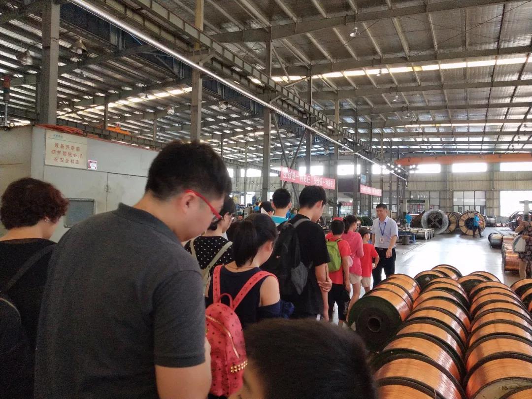 進入車間后,學(xué)生們在各個帶隊老師的引導(dǎo)下有序地進行參觀。從拉絲到絞線,從擠絕緣到成纜,學(xué)生們不僅對生產(chǎn)流程有了深入的認識,而且真實感受到了電纜的一線生產(chǎn)環(huán)境,收益頗豐。