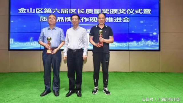 上海起帆電纜股份有限公司總經(jīng)理周供華作為獲獎(jiǎng)嘉賓出席頒獎(jiǎng)典禮,區(qū)長(zhǎng)胡衛(wèi)國為其頒發(fā)區(qū)長(zhǎng)質(zhì)量獎(jiǎng)。